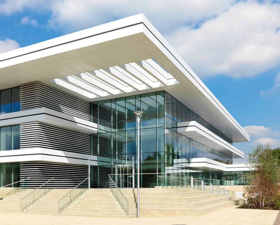 Our expertise extends beyond conventional façade systems. We offer Unitised Curtain Walling, bespoke Cladding systems, Aluminium Windows, Aluminium Doors, and Recladding of existing buildings.